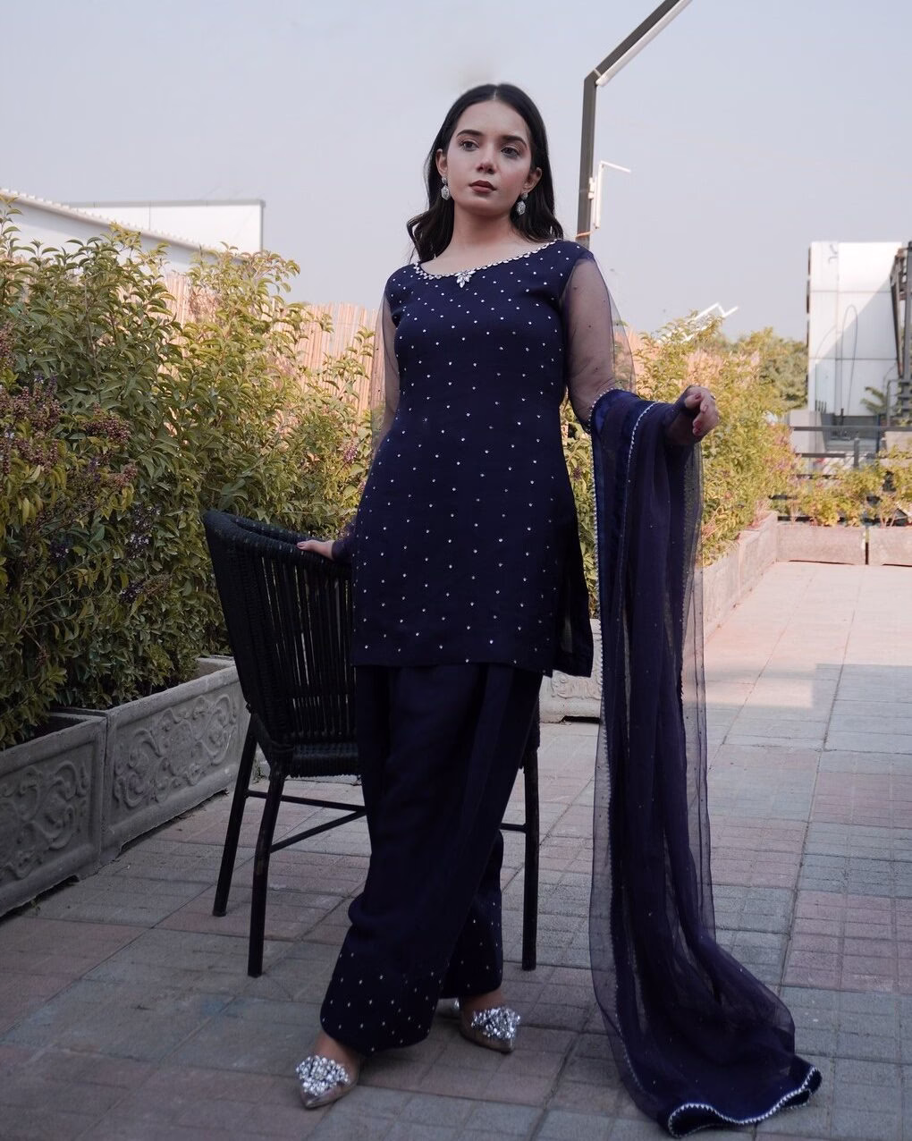 - Dupatta: Cotton Net Muqesh